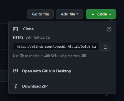 - Download the code by clicking on the green button.