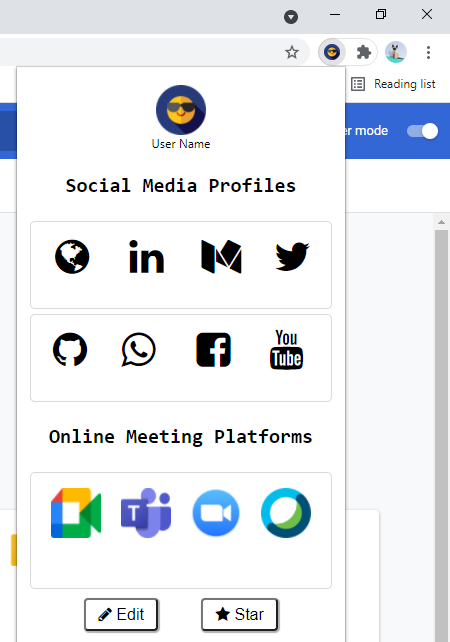 Get all the links of your social media accounts at one place! This extension can save your time, especially when filling the forms because now you can copy the links by clicking on the name of the link you want to copy! Click on the icon to open the link. It's simple. Give it a try.