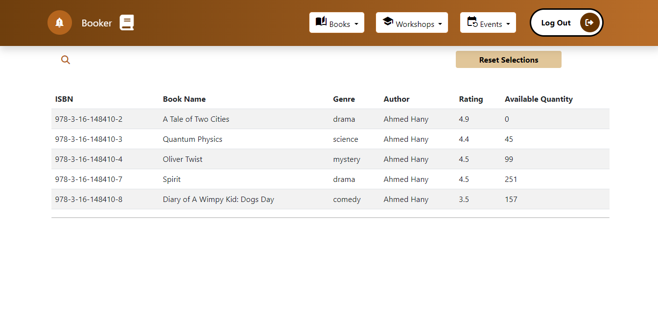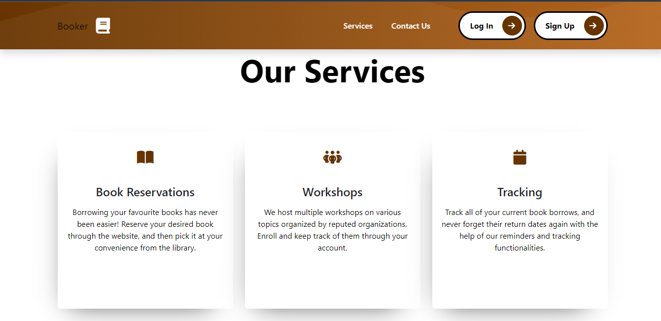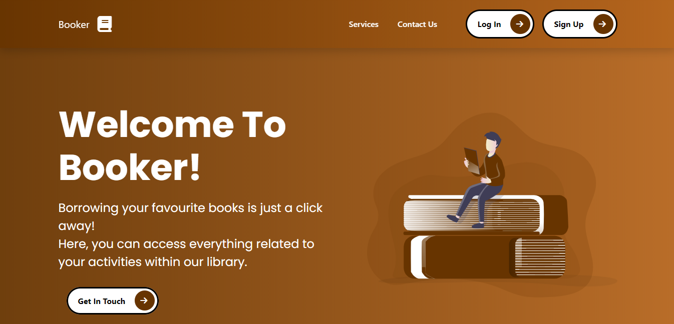 Booker is a website that serves as a library management system, allowing its users to reserve books, track their activity, and see all available workshops/events.