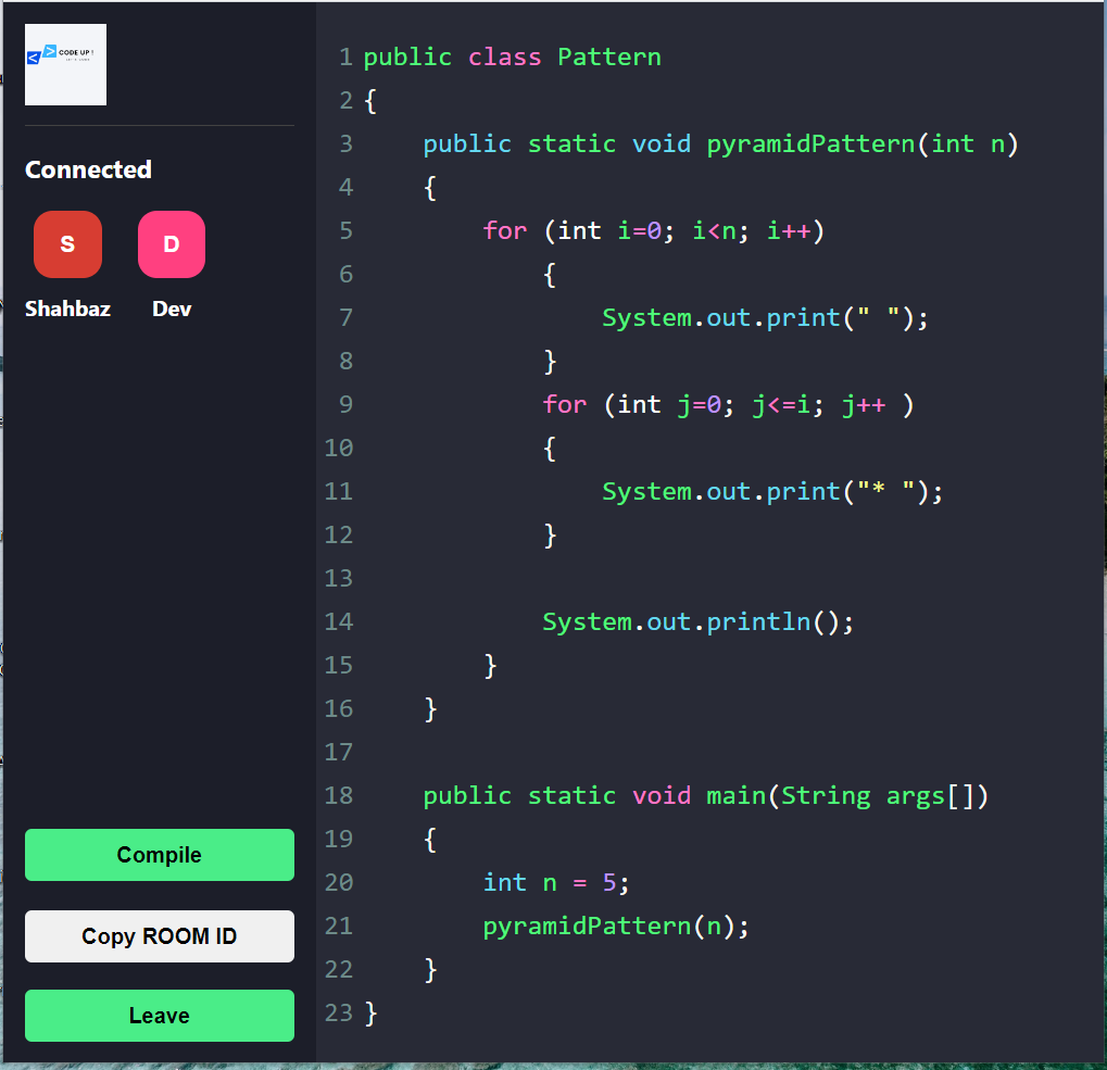 Several browser based code editors such as CodeMirror, Monaco etc. provide the ability to embed a full-featured code editor in your web page. It is a real-time editor where at a time more than 2 people can code on it made using React.Js and Node.Js, Socket.io. It can compile code on a web app with standard input and output the user can add custom inputs to their code snippets. A user lands on the web application and can select their preferred programming languages. You can also change the theme of the editor from a list of available themes.