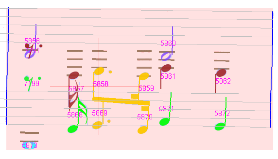 So the engine algorithm needs to be modified. We'll apply at beam-connected chords the same rule used by non-beamed chords, which is to use the middle abscissa of the chord bounds (defined as the bounding envelop of heads and stem).