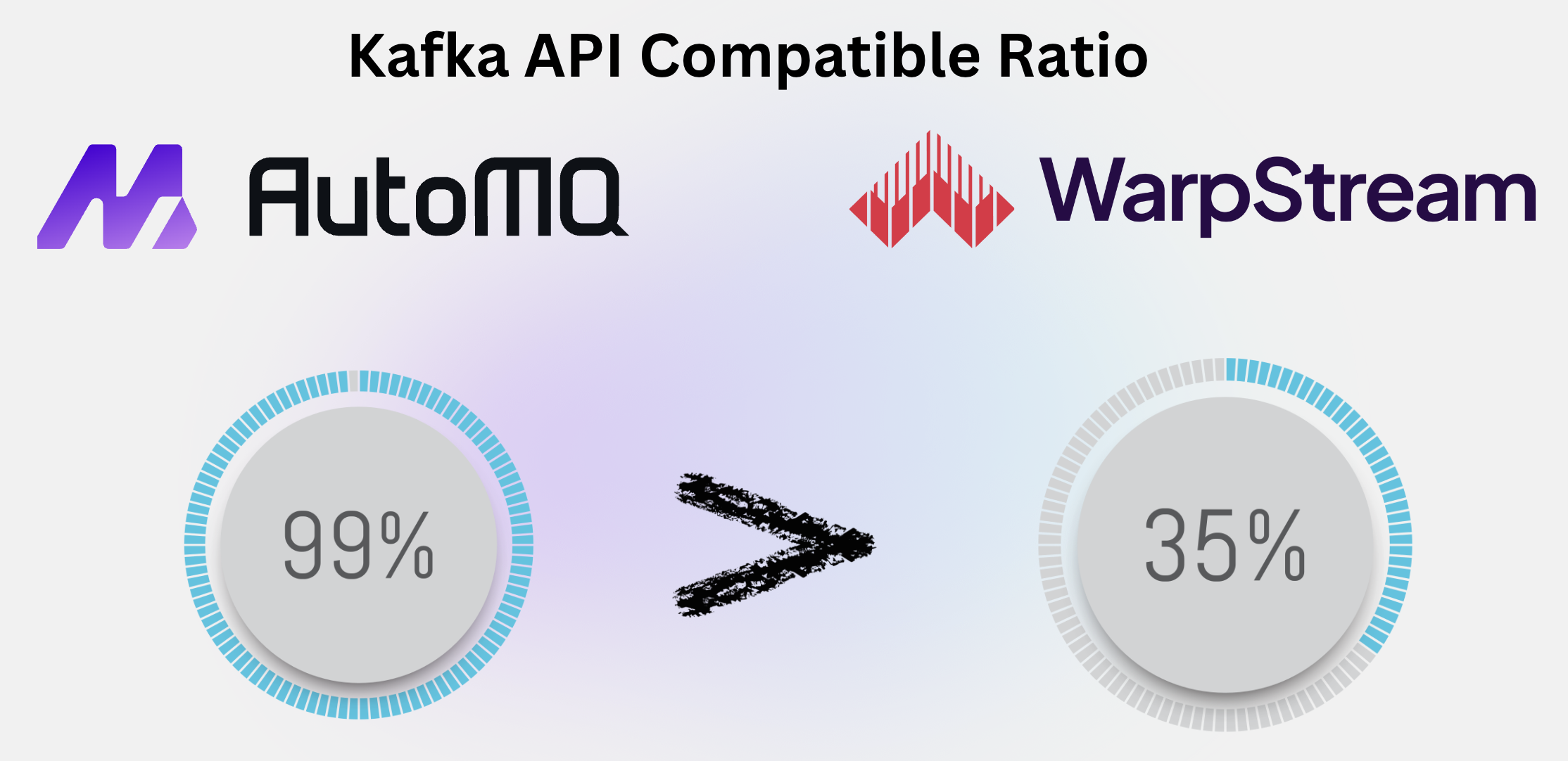 Kafka Compatibility of WarpStream : WarpStream is a stream system re-implemented using Golang, which re-implements Kafka APIs and provides compatibility at the protocol level, supporting only 35.13% of Kafka APIs. Achieving complete compatibility with Apache Kafka APIs is difficult by merely providing protocol-level compatibility. As the Apache Kafka community trunk code continuously evolves and changes with new versions, solely protocol-level compatibility struggles to keep up with these changes and fixes, leading to discrepancies in the actual behavior of APIs compared to official APIs.