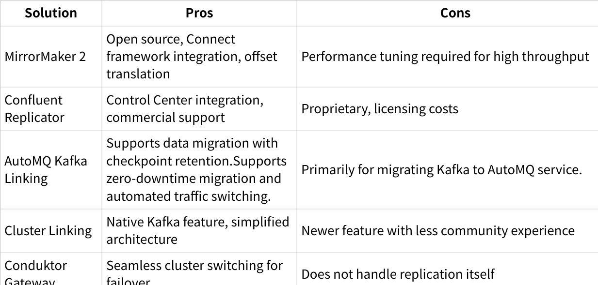 Several alternatives to MM2 exist for cross-cluster replication: