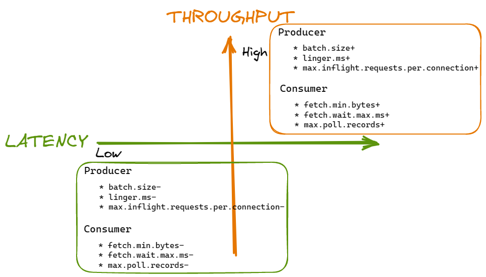 We can visualize this understanding by creating a Kafka Producer-Consumer axis diagram that illustrates key configurations and their impact on application performance.