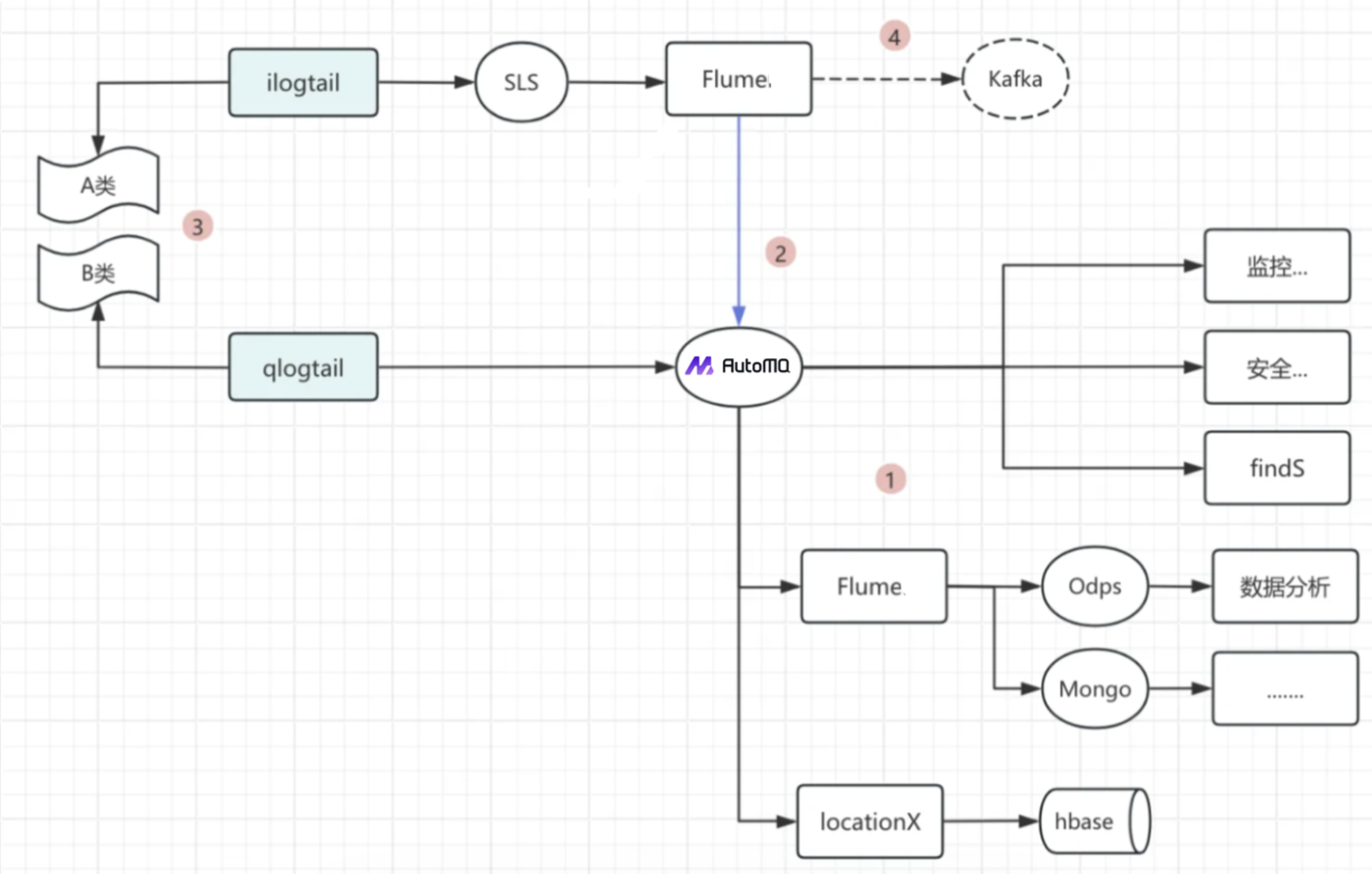 Flume implements dual-write, writing to both the old Kafka and the new AutoMQ