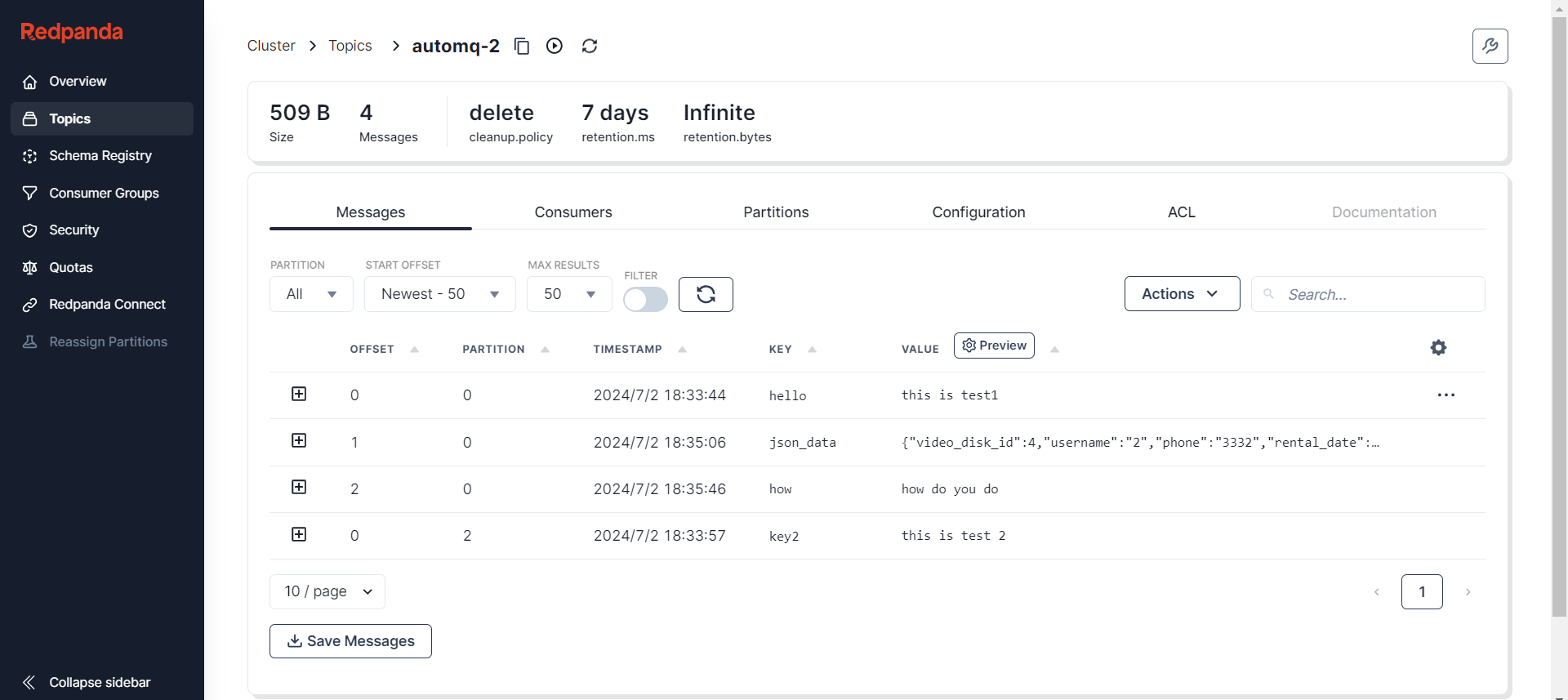Additionally, Redpanda Console allows users to manually create and publish messages, which is highly valuable for testing or injecting messages in specific scenarios.
