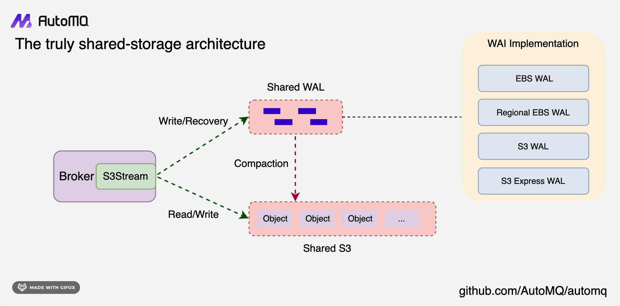 When the environment provides a low-latency S3 implementation, AutoMQ can fully adopt the S3 WAL form to eliminate dependence on EBS, making the architecture simpler while satisfying the low-latency requirements of applications.