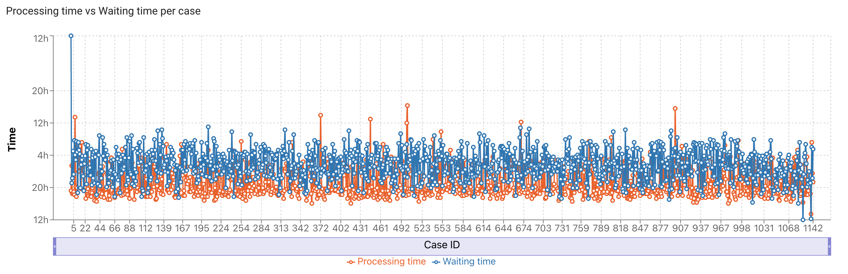 The Waiting time vs. Processing time per case graph requires the following changes: