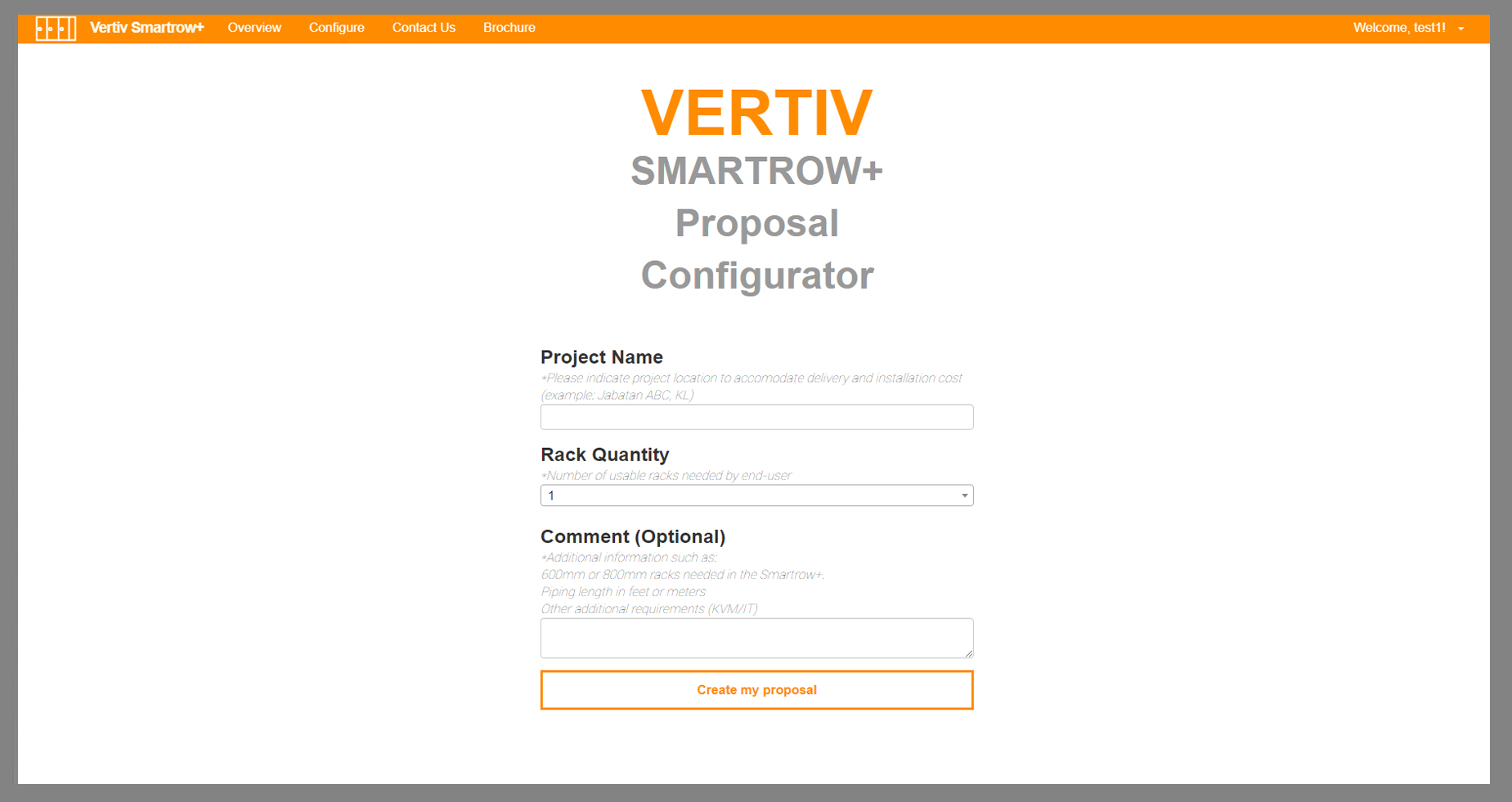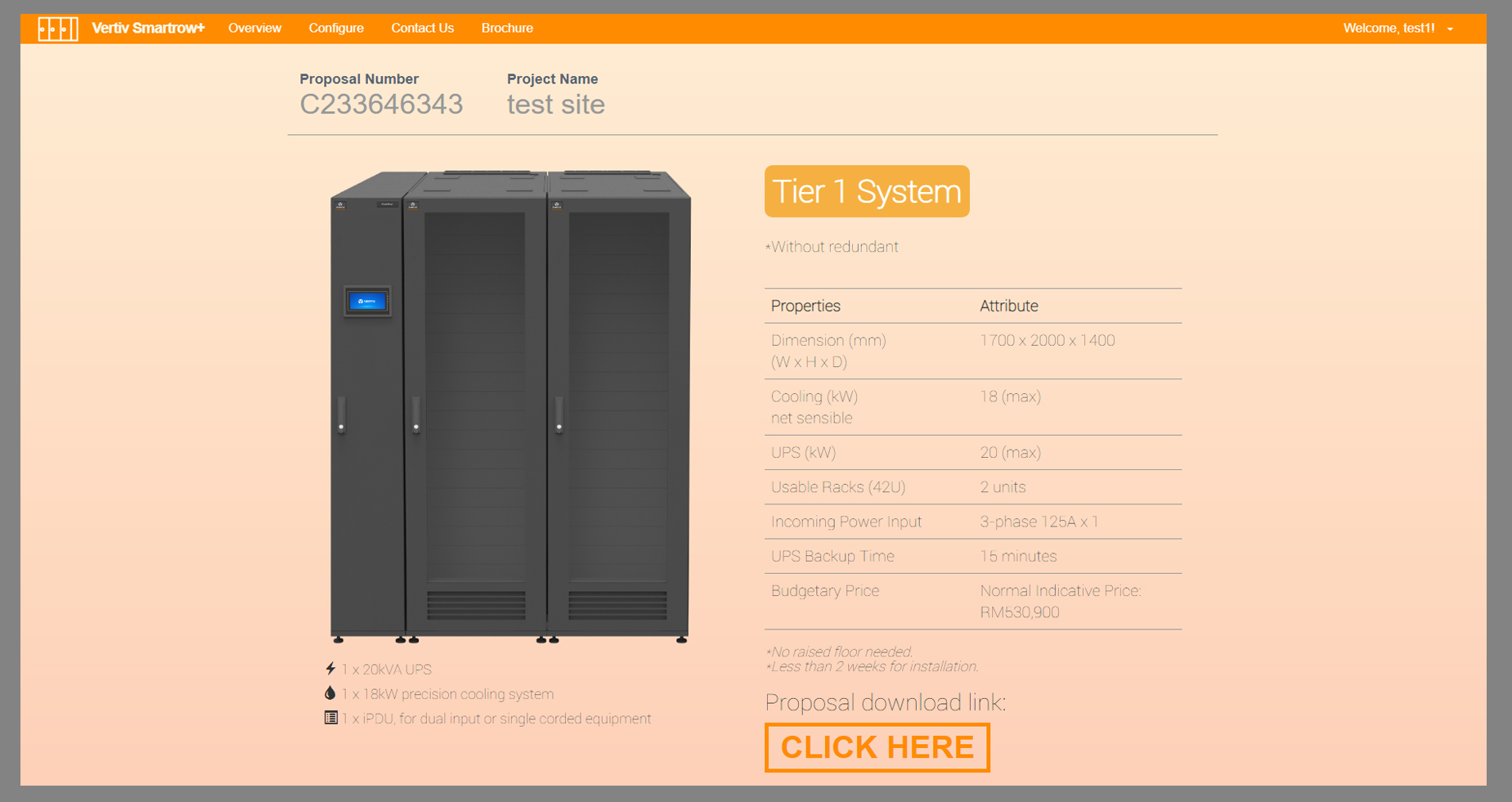 demo Vertiv Smartrow+, configure a proposal for all-in-one data center infrastructure.