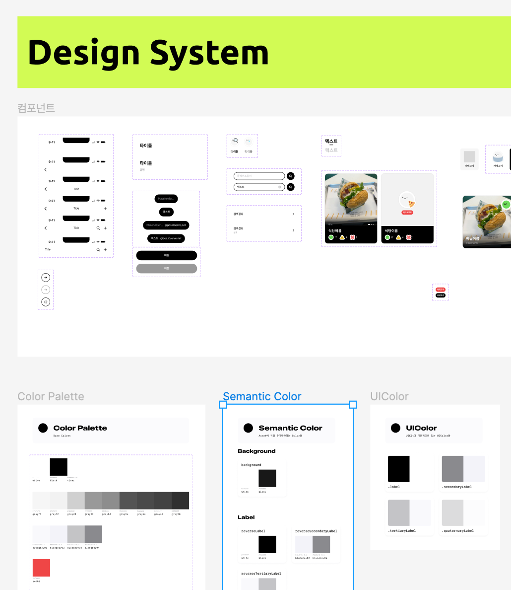 피그마 좌측에 있는 Design System 영역의 Semantic Color 프레임을 확인합니다.