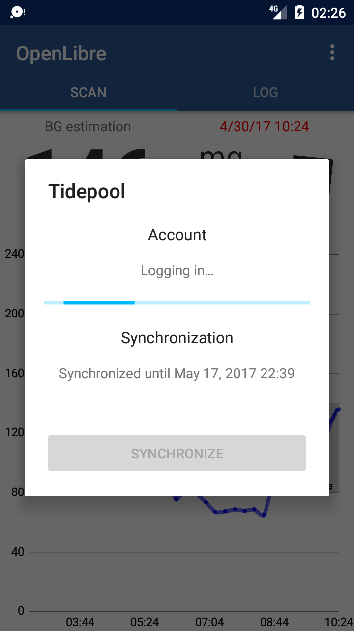 Its allows users to see the current tissue glucose level as well as an estimation of the current blood glucose level based on the tissue glucose levels from the past 15 minutes. Historic data is visualized graphically in a plot.