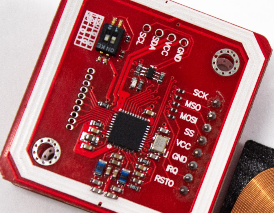 The module by itself is already very versatile, it has its own coil that is in the ring painted white. It can be used with our board and since it has support for 3.3V and 5V it can be used with any other development board that handles those voltages like an Arduino Uno, just remember to choose the interface you are going to use. It also already has a lot of support in the community, so it won't be very difficult to learn how to use it.