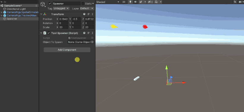 - Create an new unity scene set up with tracked alias and a spatial simulator with grab support.