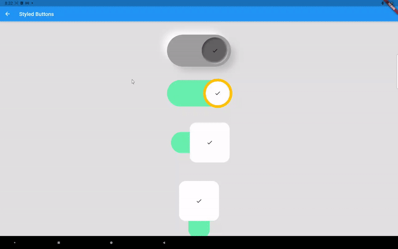 StyledCheckbox is very similar to StyledButton except for that the pressedStyle parameter is replaced by selectedStyle, as checkbox (and other toggleable components) cares about whether itself is selected (not pressed).