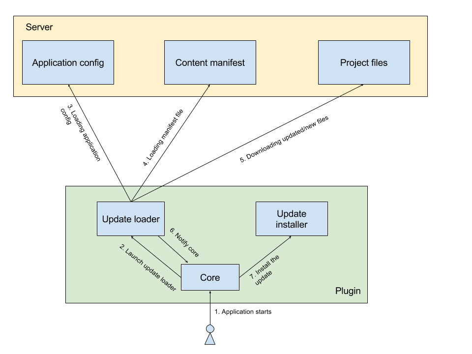 content_urlfrom the application config to load manifest file. He uses it to find out, what has changed since the last release. - Update loader downloads all updated/new files from the