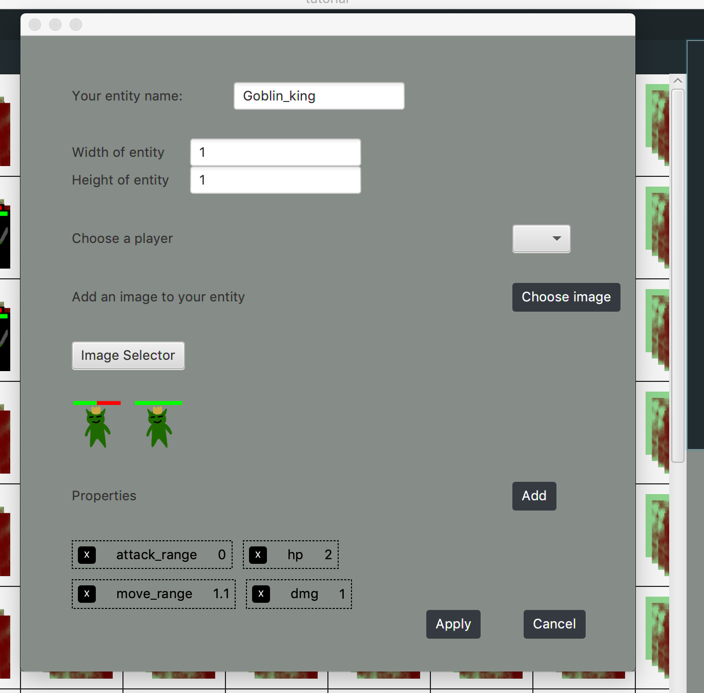 But we want to display the image that corresponds to the goblins's health. To do so, click on Image Selector button.