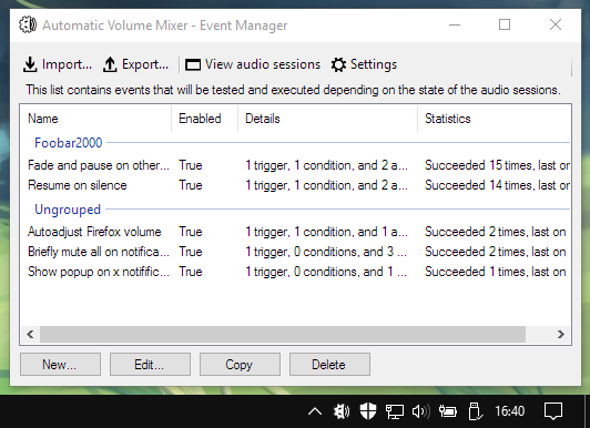 Automatic Volume Mixer is a tool that allows automatization of Windows Volume Mixer based on user's rules. You can open the Volume Mixer by right-clicking on the speaker icon in the system tray and selecting Open Volume Mixer. This application is an automatic version of that applet.