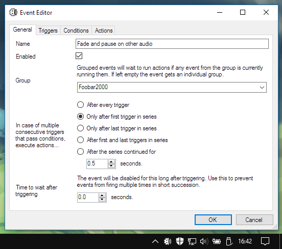 - Pausing your audio player (e.g. foobar2000) whenever any other application makes a noise,