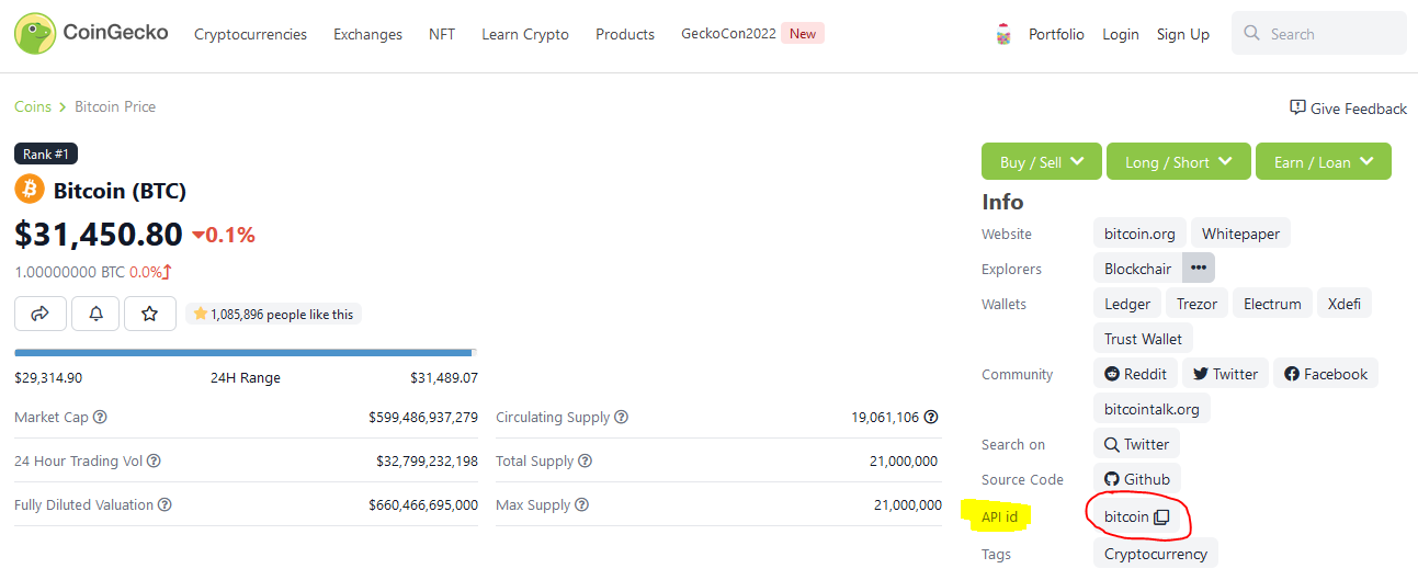 In der Datei Coins.txt können die gewünschten Kryptowährungen angegeben werden, welche ausgelesen werden sollen. Bitte ab Zeile drei die Kryptowährungen hinzufügen. Angegeben werden muss die API id der jeweiligen Kryptowährung von CoinGecko.com, welche auf der jeweiligen Coin-Seite zu finden ist: