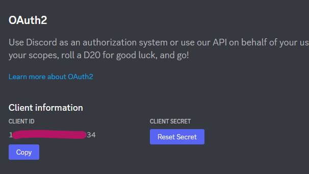 - Now, look for the OAuth2 option in the menu on the left sidebar and click on it to find your CLIENT ID. It's a long string of numbers.