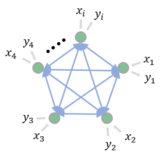 N筆輸入向量,每一筆有P個維度,表示成 x