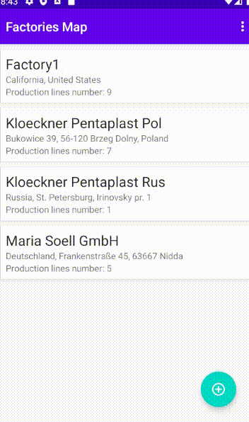 The application for Android OS allows to visualize factories location and process factories data.