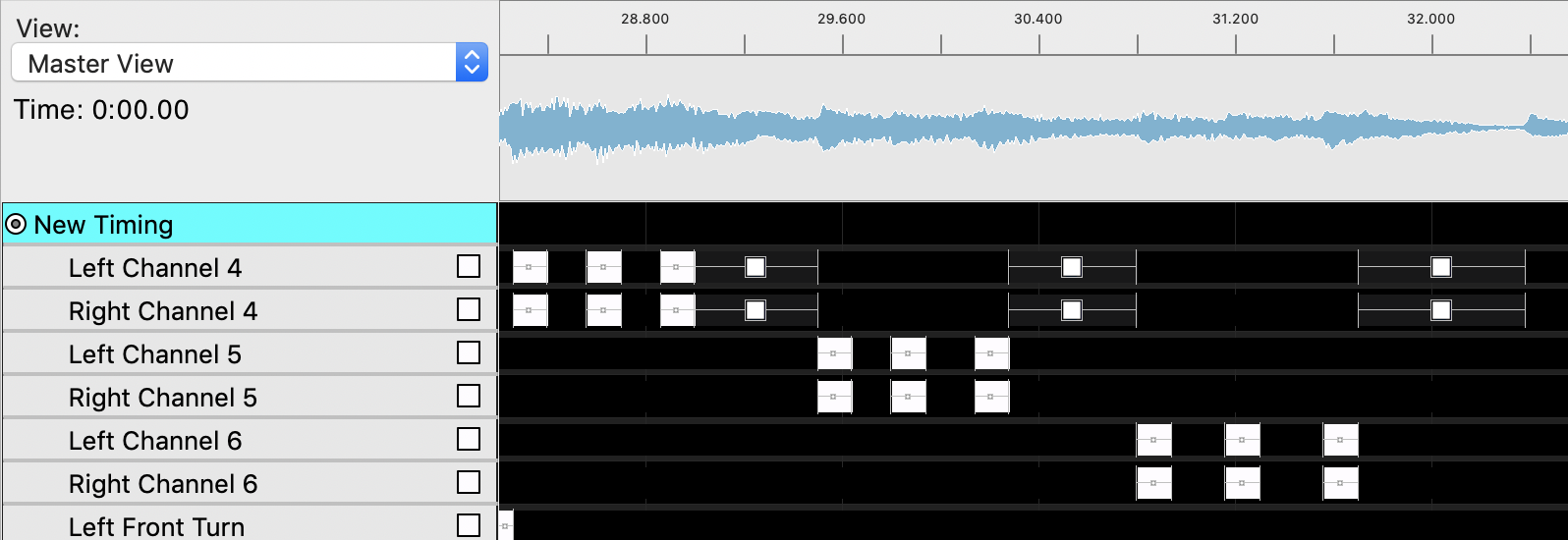 In the Sequencer tab, double click on "Tesla Model S" then double click on "All Lights and Closures" to view all channels