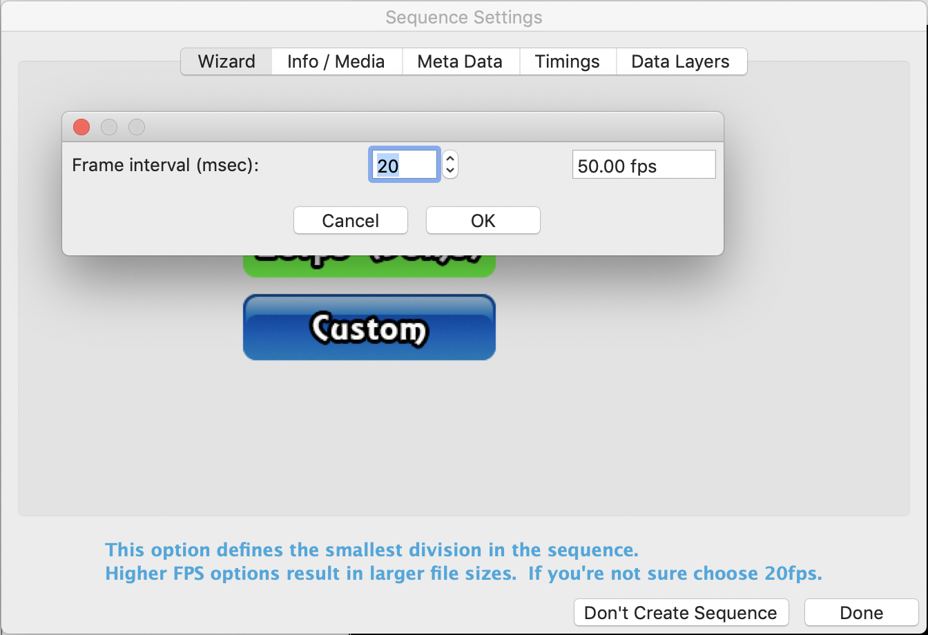 Change the Frame interval to 20ms then select OK.