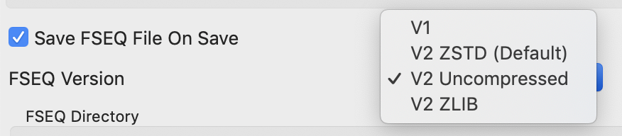 IMPORTANT: In File > Preferences > Sequences > FSEQ Version, select "V2 Uncompressed".