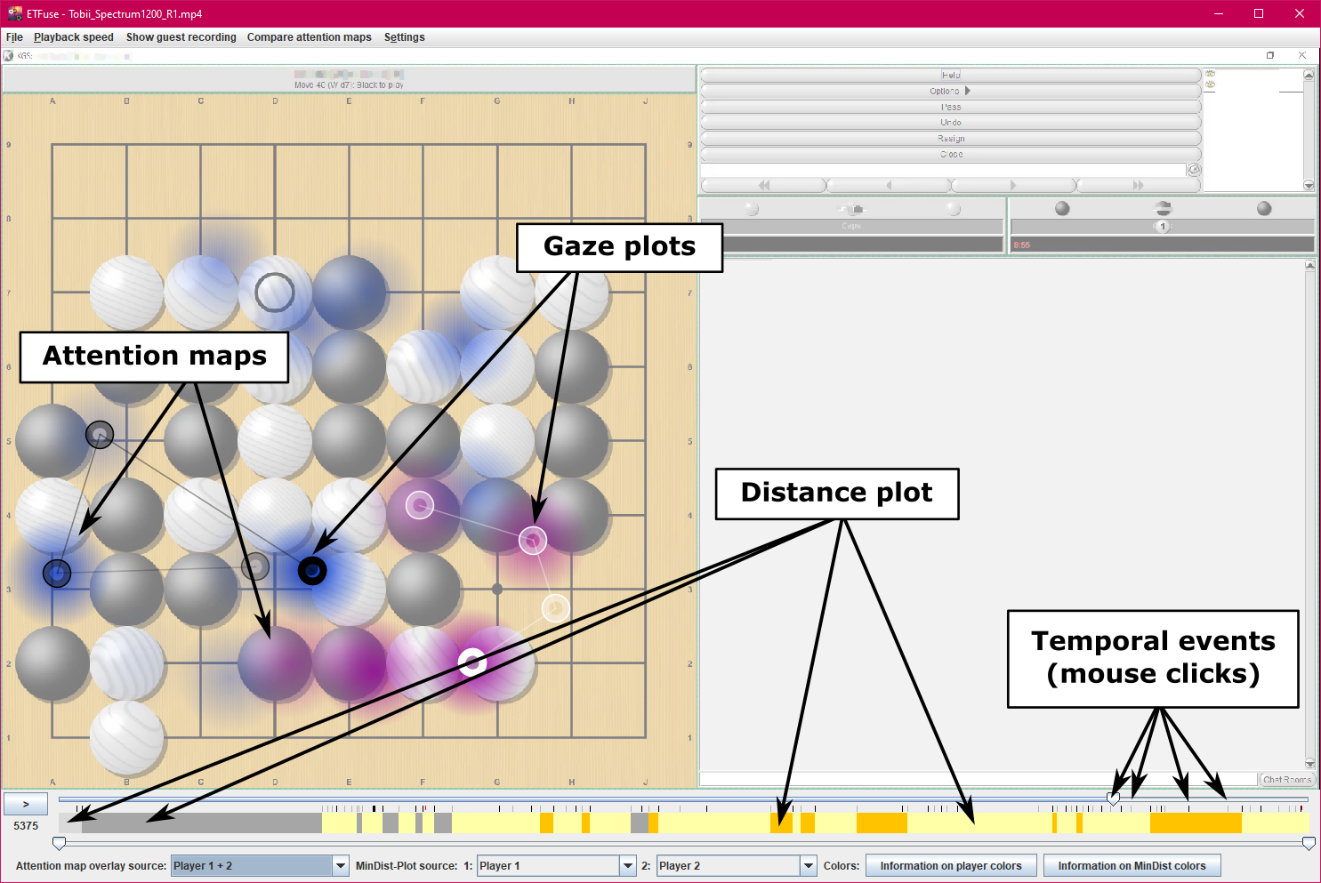 T. Munz, N. Schäfer, T. Blascheck, K. Kurzhals, E. Zhang, and D. Weiskopf. Comparative Visual Gaze Analysis for Virtual Board Games. Proceedings of the 13th International Symposium on Visual Information Communication and Interaction (VINCI 2020). 2020. DOI: 10.1145/3430036.3430038.