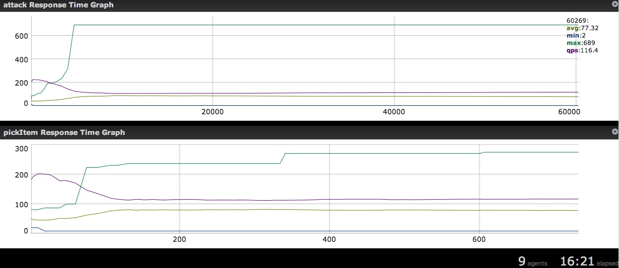 #功能 对游戏项目进行自动化的性能测试和分析, 为游戏服务器提供机器人及其运行脚本, 最终输出性能测试分析报告. pomelo-robot 模块通过沙箱的方式执行用户自定义的JS脚本. 运行过程中各客户端会自动把数据汇报给主节点, 主节点把所有节点的测试数据进行提炼汇总, 计算出平均响应时间等统计数据, 然后定时发给内置的HTTP服务器进行界面展示.