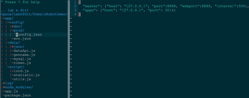 npm install pomelo-robot###config.json配置 "config.json"分为两种运行环境: 开发(dev)或生产(prod)环境, "prod"环境的文件内容如下: