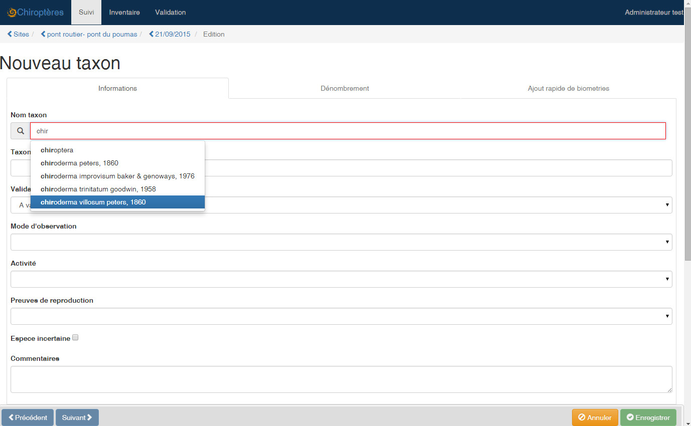PNC/ChiroBundle la mise en application de cette base pour fournir une interface de saisie des protocoles de suivi des chiroptères.