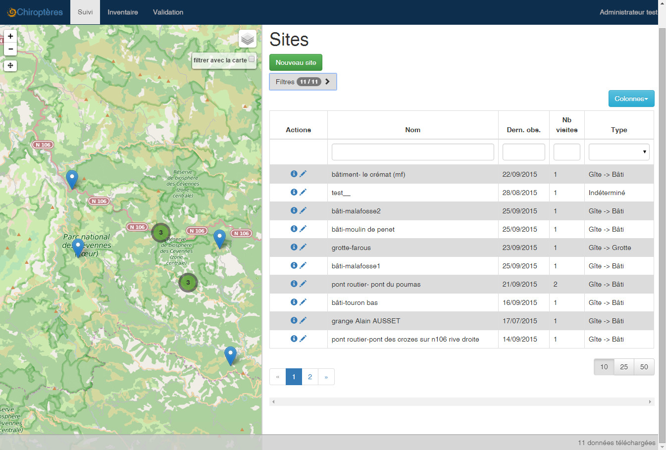 Actuellement Projet_Suivi est fourni avec la partie générique de suivi + le protocole de suivi des chiroptères ainsi qu'un inventaire du patrimoine bati.