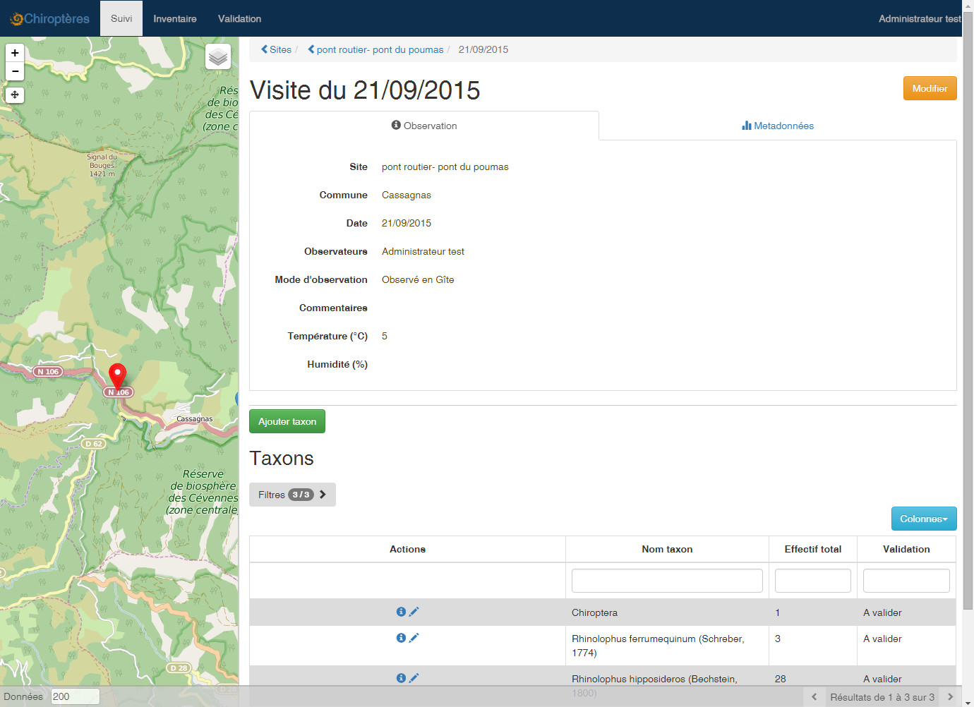 A chaque visite des observations de taxons sont faites avec les spécificités de chaque protocole.