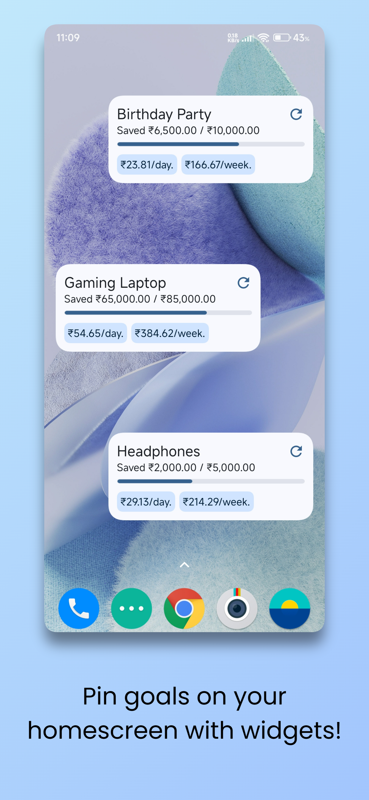 - Get daily, semi-weekly or weekly reminders for your saving goals based on goal priority.