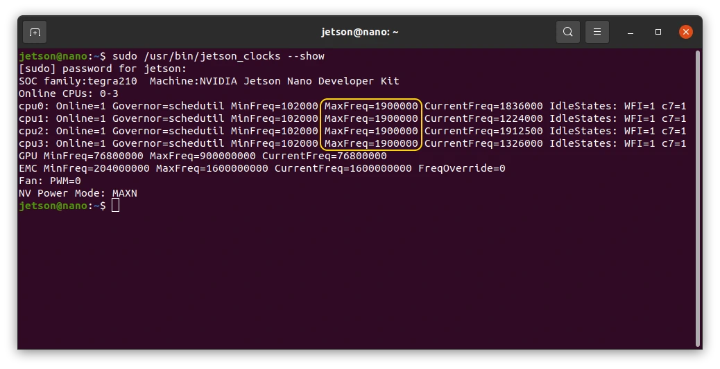 The Nano is overclocked at 1900 MHz. See https://qengineering.eu/overclocking-the-jetson-nano.html for more information.