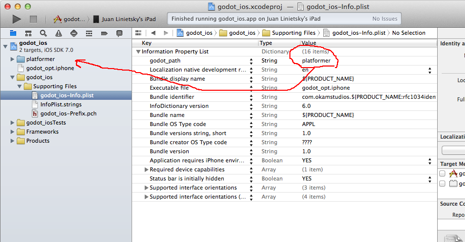 - Since there is no automatic deployer yet, unzip export_templates.tpz manually and extract GodotiOSXCode.zip from it.