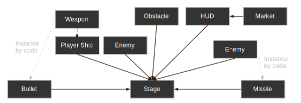 For example, here's how a simple shooter game can be imagined: