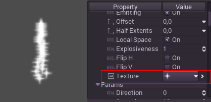 A particle system uses a single texture (in the future this might be extended to animated textures via spritesheet). The texture is set via the relevant texture property: