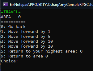 - "Travelling" by increasing "floor number" with program saving your highest floor number for you to later come back to it without the need of going through "low level" areas (plan was to have increasing difficulty modifier with floor number)