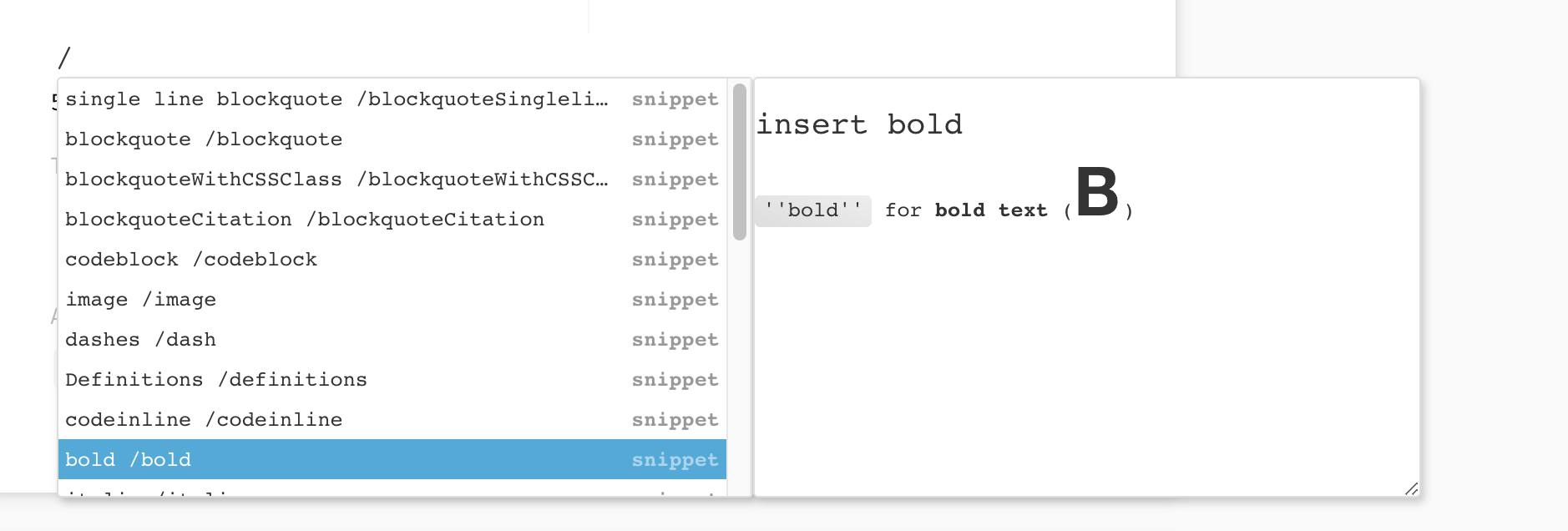 I hope I can add short cut info to the / menu, but seems it is not transcluable?