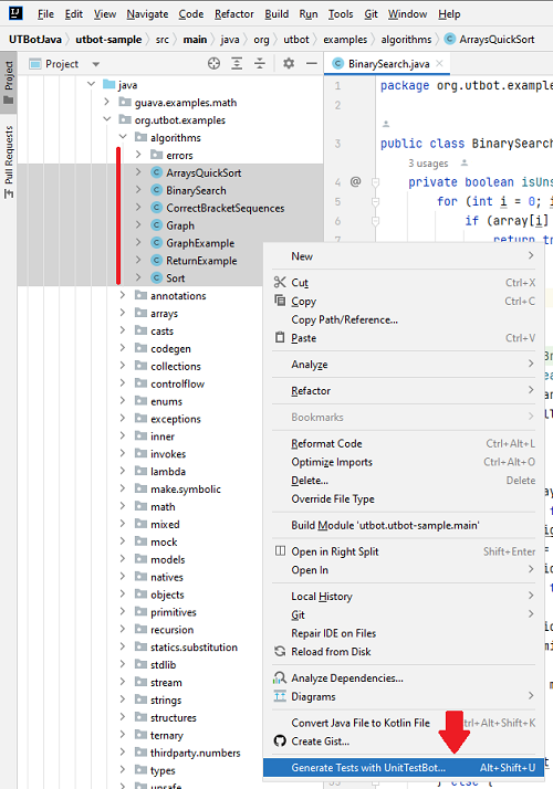 - If you need to generate tests for a package or a set of classes, you can choose them all at once in the Project tool window.
