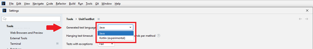By default, UnitTestBot detects your source code language and generates test methods accordingly.