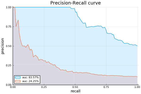 julia> prplot([targets, targets], [scores, scores .+ rand(10000) ./ 5])