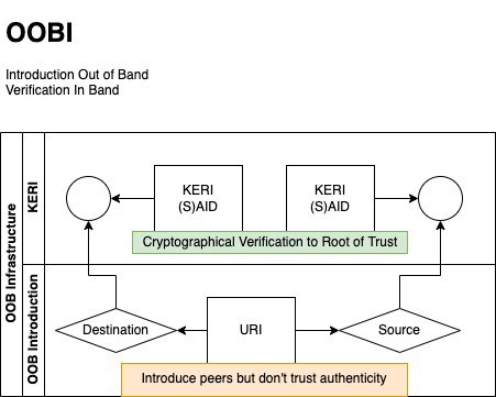 Out-of-band Introductions (OOBIs) are discovery and validation of IP resources for KERI autonomic identifiers. Discovery via URI, trust via KERI.