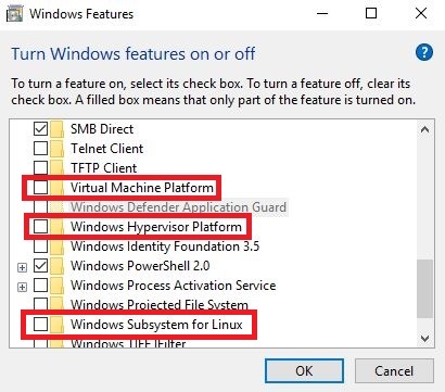 Uncheck the Hyper-V, Windows Subsystem for Linux, Virtual Machine Platform and Windows Hypervisor Platform option.