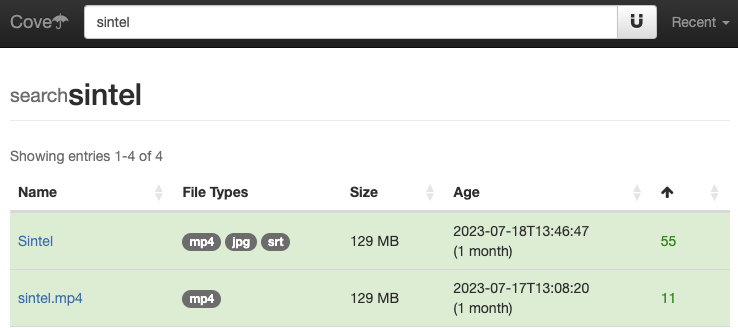 If you have not previously run cove, the DHT indexer may take 5-10 minutes to begin showing results when searching. cove's search index will improve over time. After a day or so of continuous operation, it will be sufficient to run it for a short while each day (such as during operation for streaming or browsing torrents).