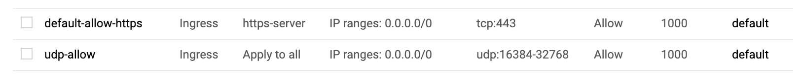 After the instance is created, you need to add a firewall rule to allow incoming UDP traffic on the port range 16384-32768.