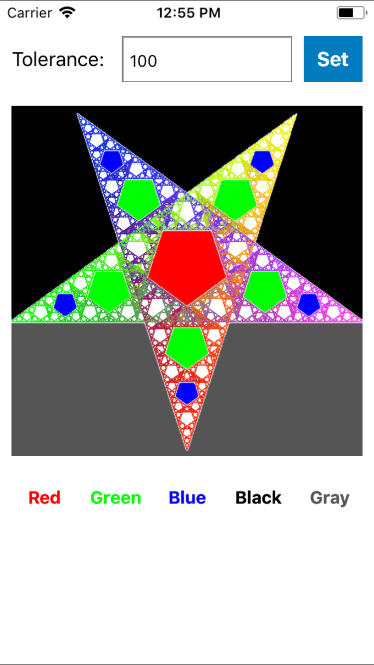 UIImage *image1 = [self.image floodFillFromPoint:tpoint withColor:[UIColor grayColor] andTolerance:tolerance];
